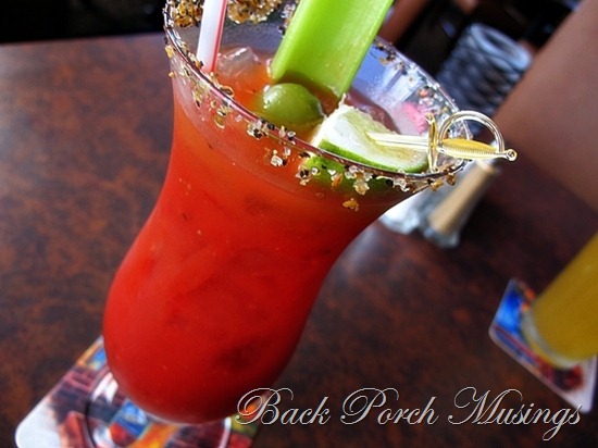 I had a Bloody Mary. J’s drink was Boulevard Wheat. We shared a Crab Cake Appetizer.